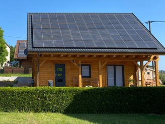 In der schönen Vulkaneifel wurde ein gut isoliertes Holzhaus errichtet das hauptsächlich mit Strom betrieben wird. Ein einfacher Holzofen wurde für Notfälle eingebaut. Ansonsten wird das Haus elektrisch mit sehr effizienten Infrarot-Heizungen beheizt. Warmwasserbereitung ebenfalls elektrisch. Eine 12kWp PV-Anlage mit Batteriespeicher unterstützt die Stromversorgung im Haus und die Wallbox für E-Autos.